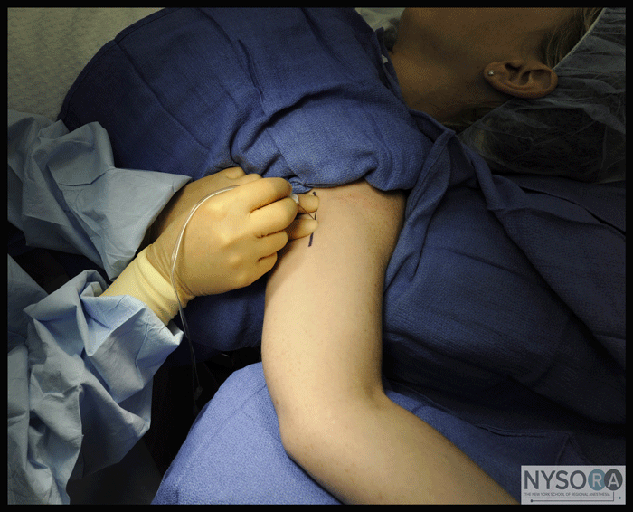 Landmarks and Patient Positioning The patient is placed in the supine position with the head facing away from the side to be blocked. The arm is abducted to form an approximately 90° angle in the elbow joint (Figure 5).