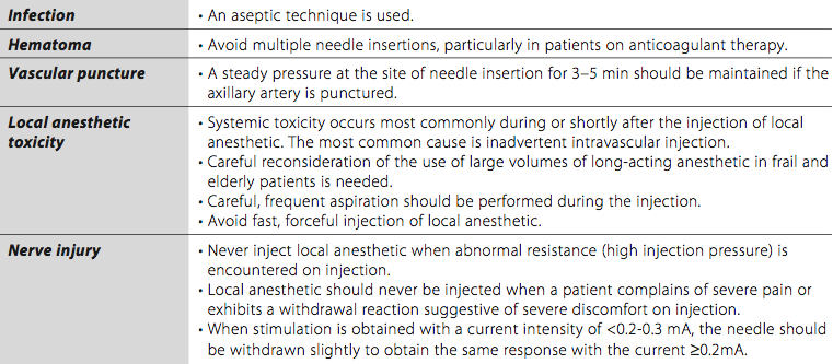Complications and how to avoid them Table 2: Complications of Axillary Block and Techniques to Avoid them ![]() |