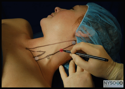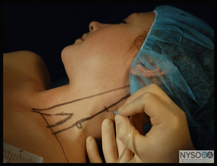 Figure 1: Needle insertion for superficial cervical plexus block. The needle is inserted behind the posterior border of the sternocleidomastoid muscle. Essentials