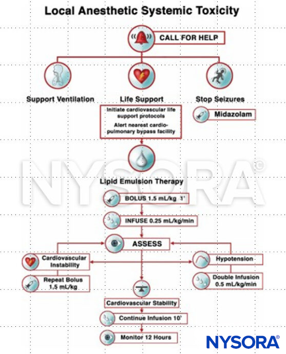 - Continue monitoring for 30-45 min after injection of large volumes or toxic doses of LAs