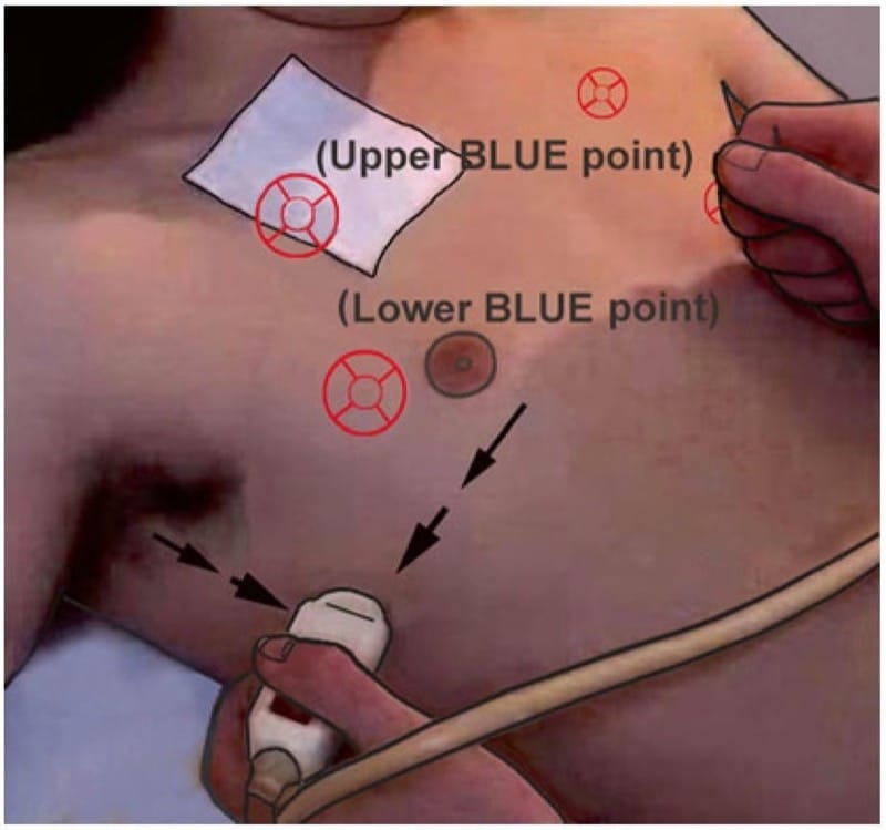 - The lower BLUE-point immediately indicates pneumothorax in supine, ventilated patients.