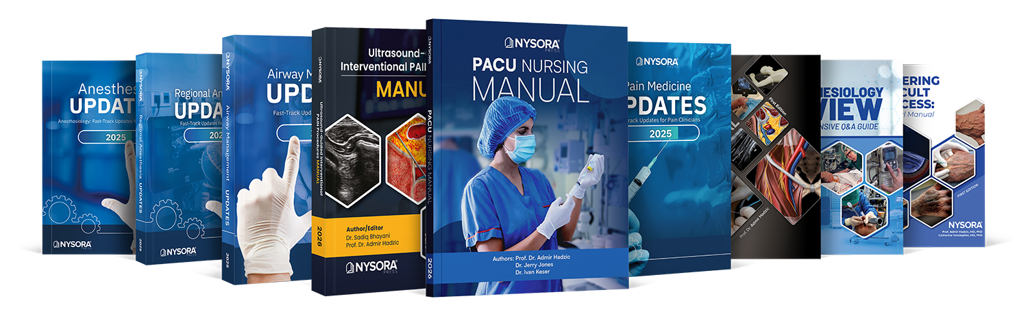 Verfasst von führenden Experten und von internationalen Spezialisten auf Genauigkeit, Klarheit und klinische Relevanz geprüft. Gestaltet und illustriert im typischen NYSORA-Stil, machen sie komplexe Konzepte praxisnah, anschaulich und leicht in der täglichen Praxis anwendbar.