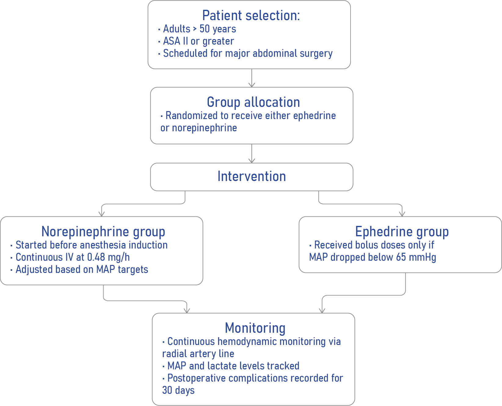 A research team at Amiens Hospital University in France conducted the EPON trial (Early Use of Norepinephrine), a single-center, randomized controlled study, to evaluate whether prophylactic norepinephrine infusion could better prevent postinduction hypotension and its associated complications compared to standard treatment with reactive ephedrine boluses.