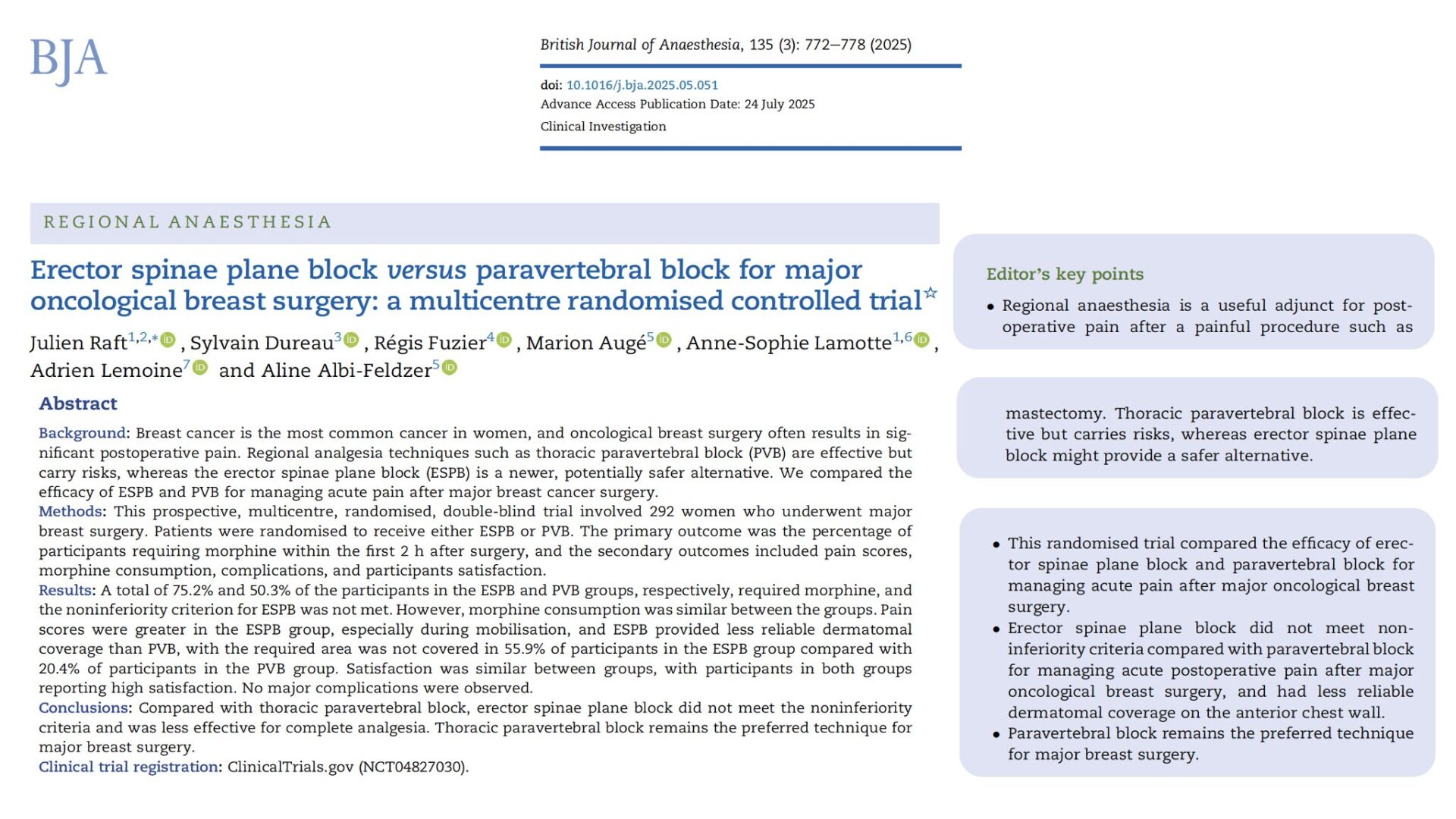 For more information, refer to the full article in the Journal of Clinical Anesthesia.