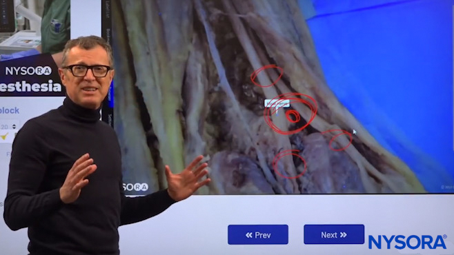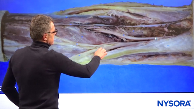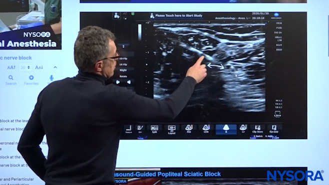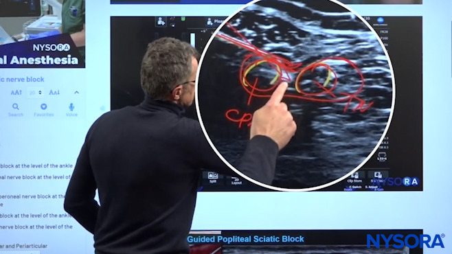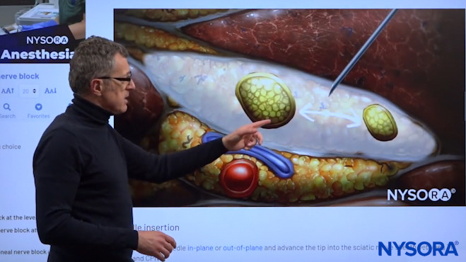 Dr. Hadzic explaining the sciatic nerve sheath using NYSORA’s proprietary Reverse Ultrasound Anatomy cognitive aids.