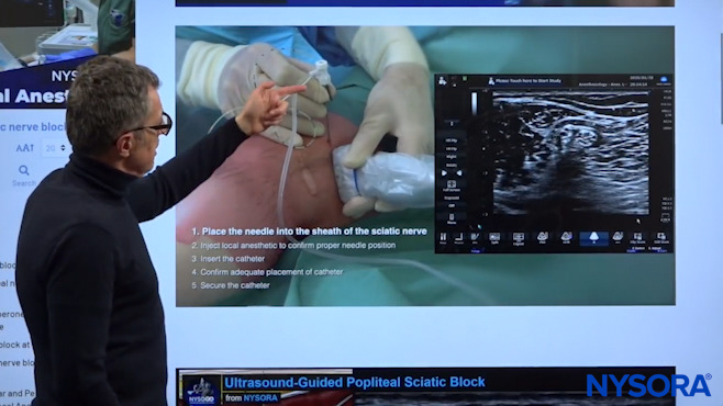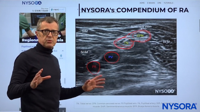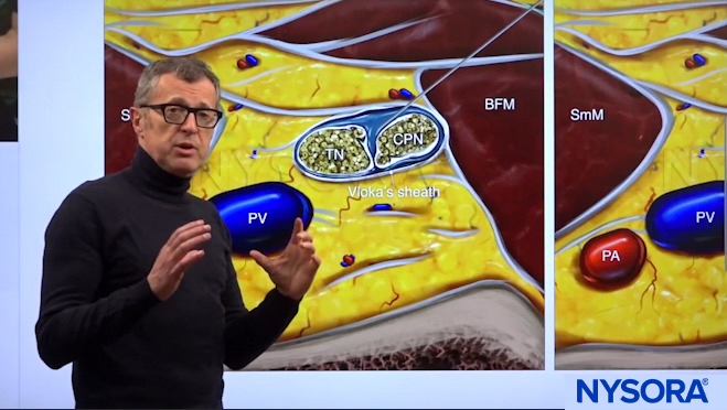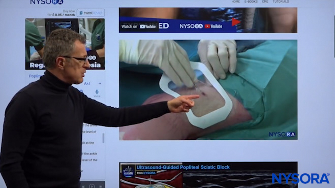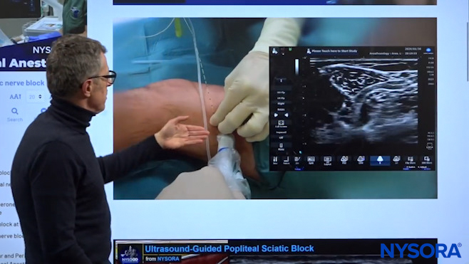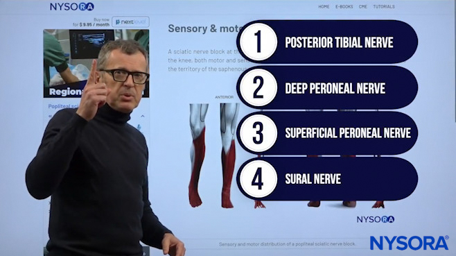 Dr. Hadzic explaining which nerves are covered by the popliteal block.