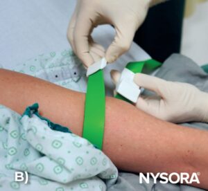 - Ensure the tourniquet lays flat against the skin and remains untwisted for optimal performance. A twisted tourniquet is less effective and uncomfortable for the patient.