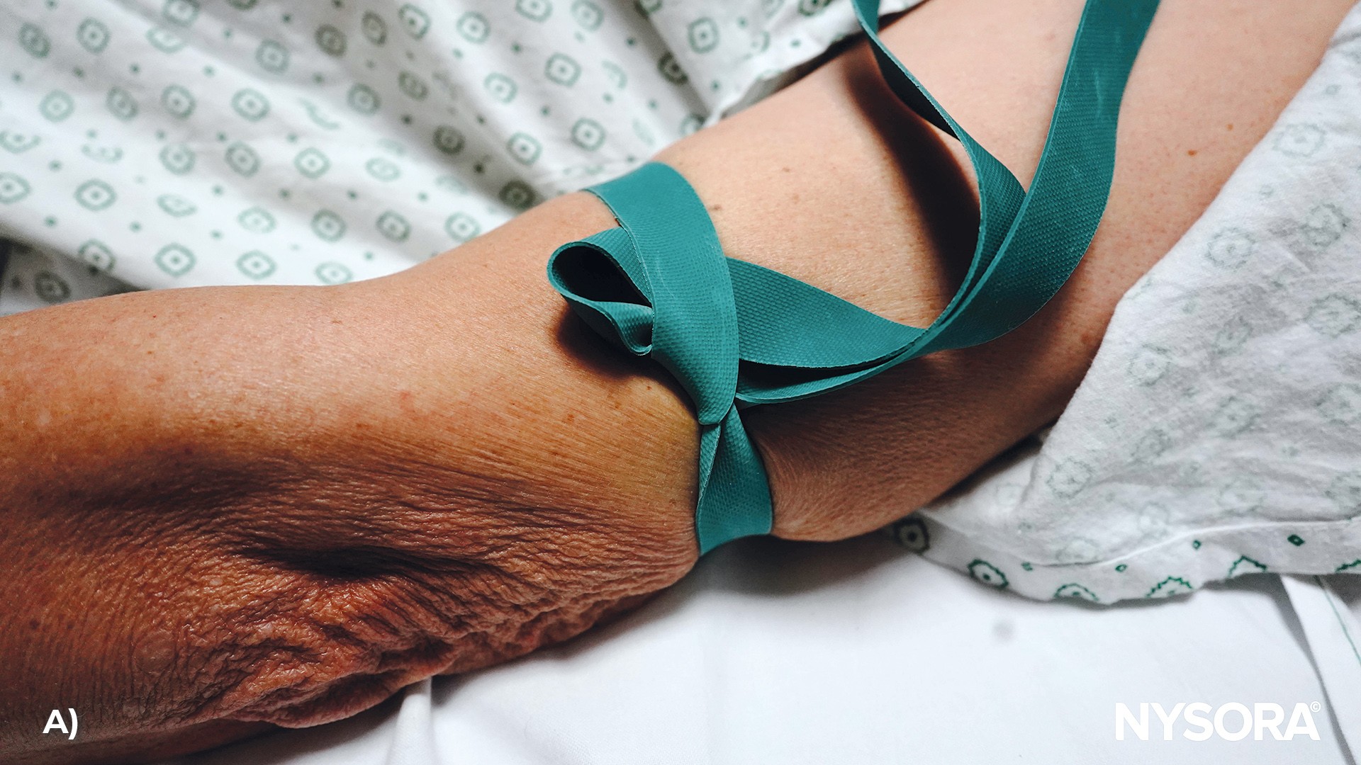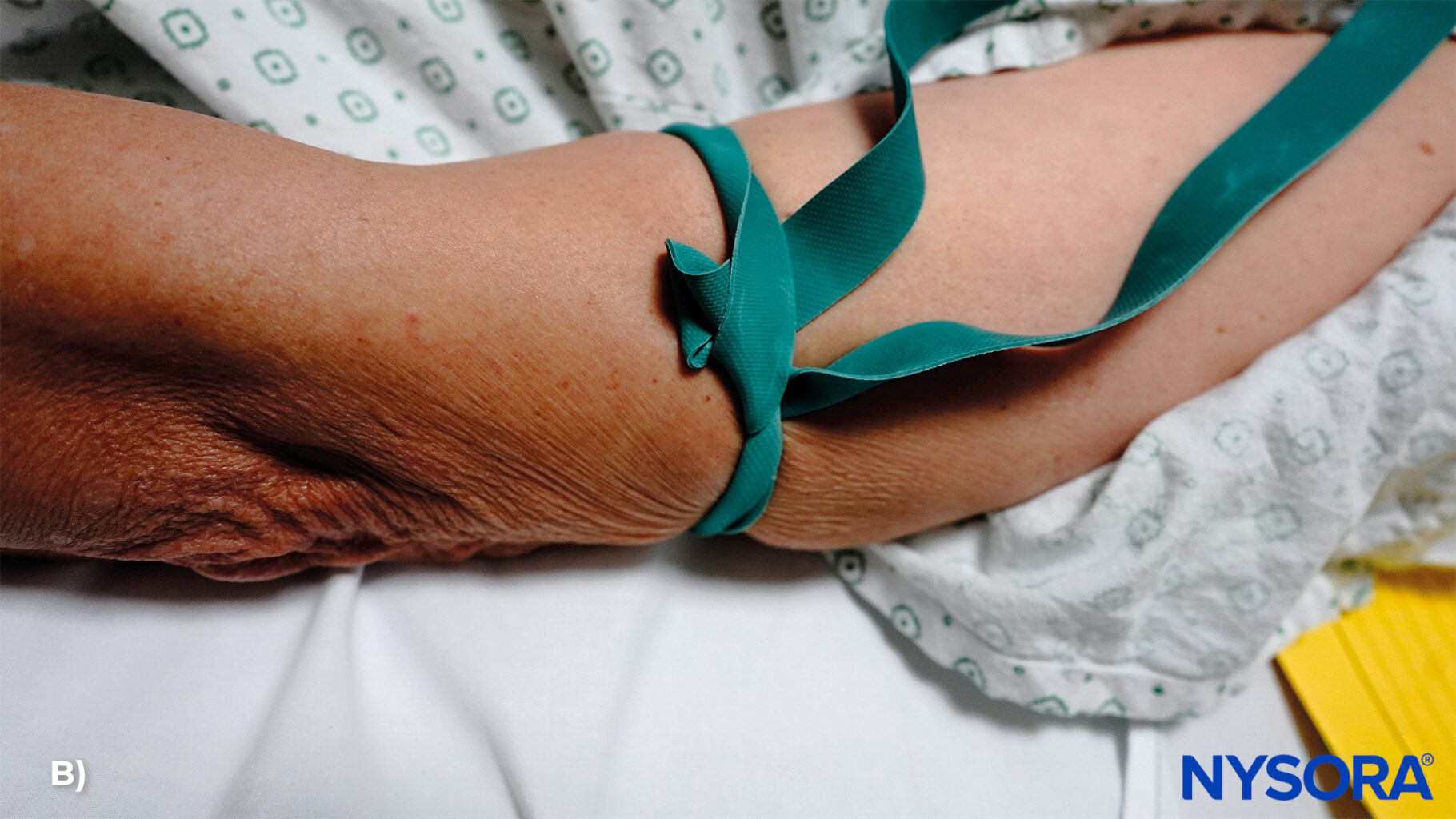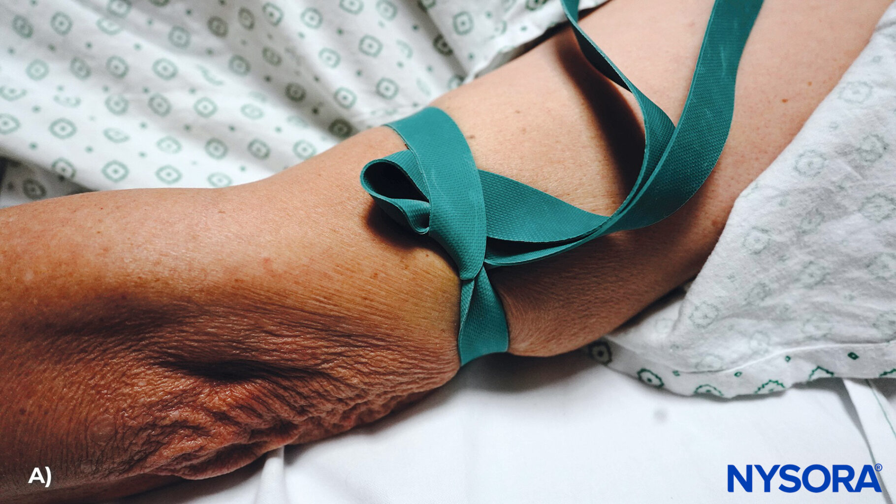 It’s typically placed a few inches above the venipuncture site, on the upper arm for forearm veins, or on the forearm for wrist and hand veins.