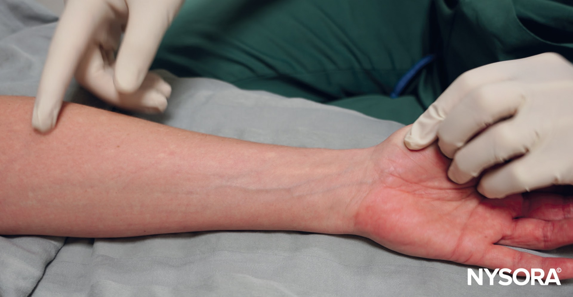 Palpating the veins of the forearm to select the perfect vein. If a vein feels round and springy, even if not visible, it is likely suitable for cannulation.