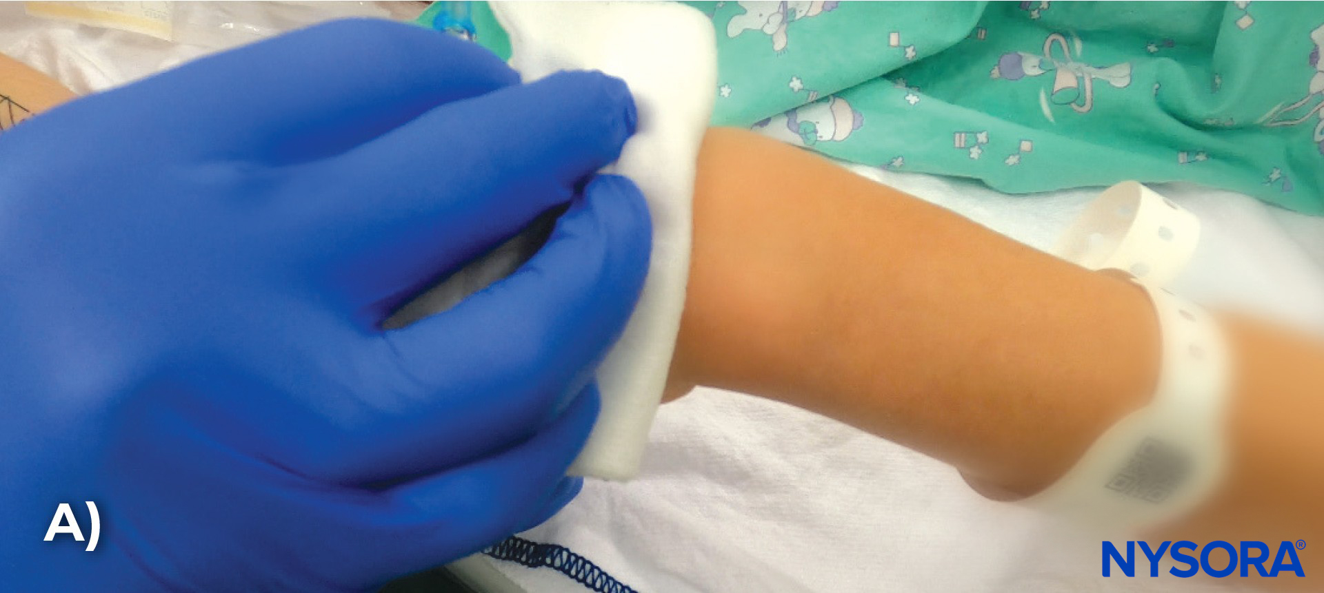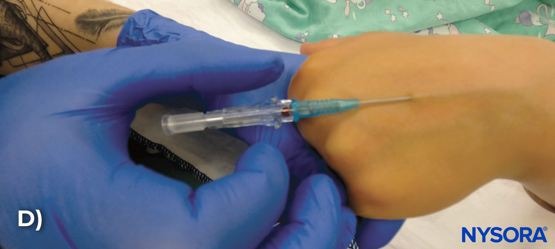 Step-by-step technique of IV cannulation in the hand of a pediatric patient