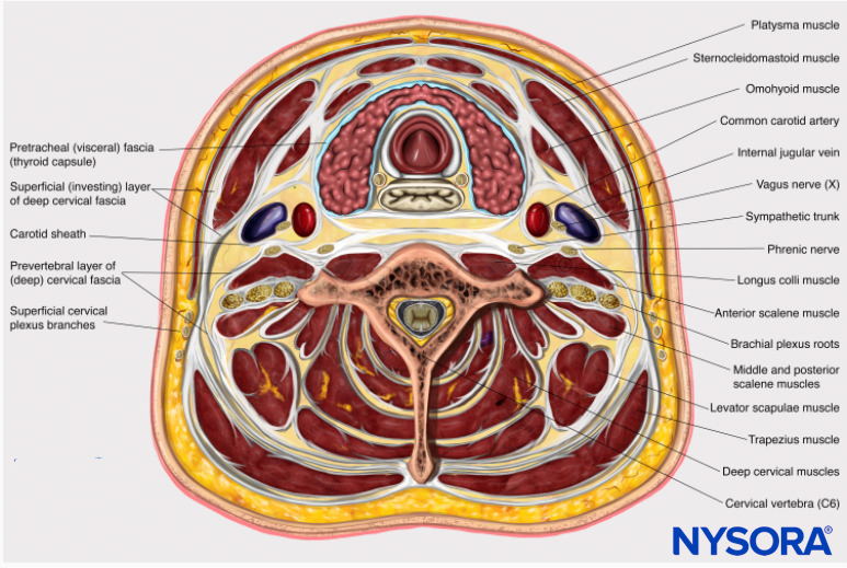 Cognitive aid: Transverse view of the brachial plexus at the level of the C6 vertebra.