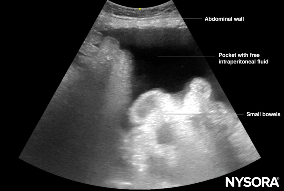 Illustration of a pocket with free intraperitoneal fluid.