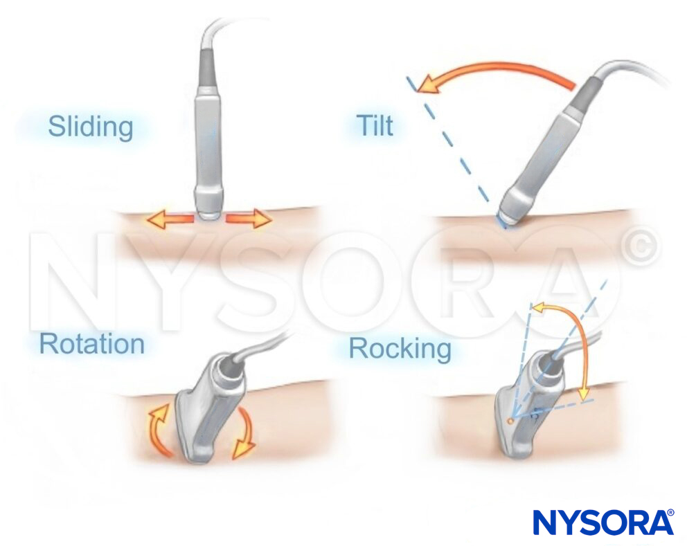 - Tilting: To tilt the transducer to planes perpendicular to the index mark.