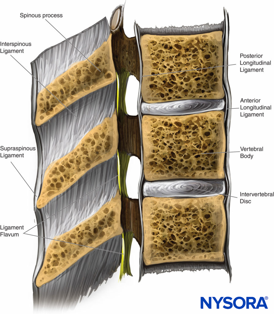 • After needle insertion, the first significant resistance felt is the ligamentum flavum.