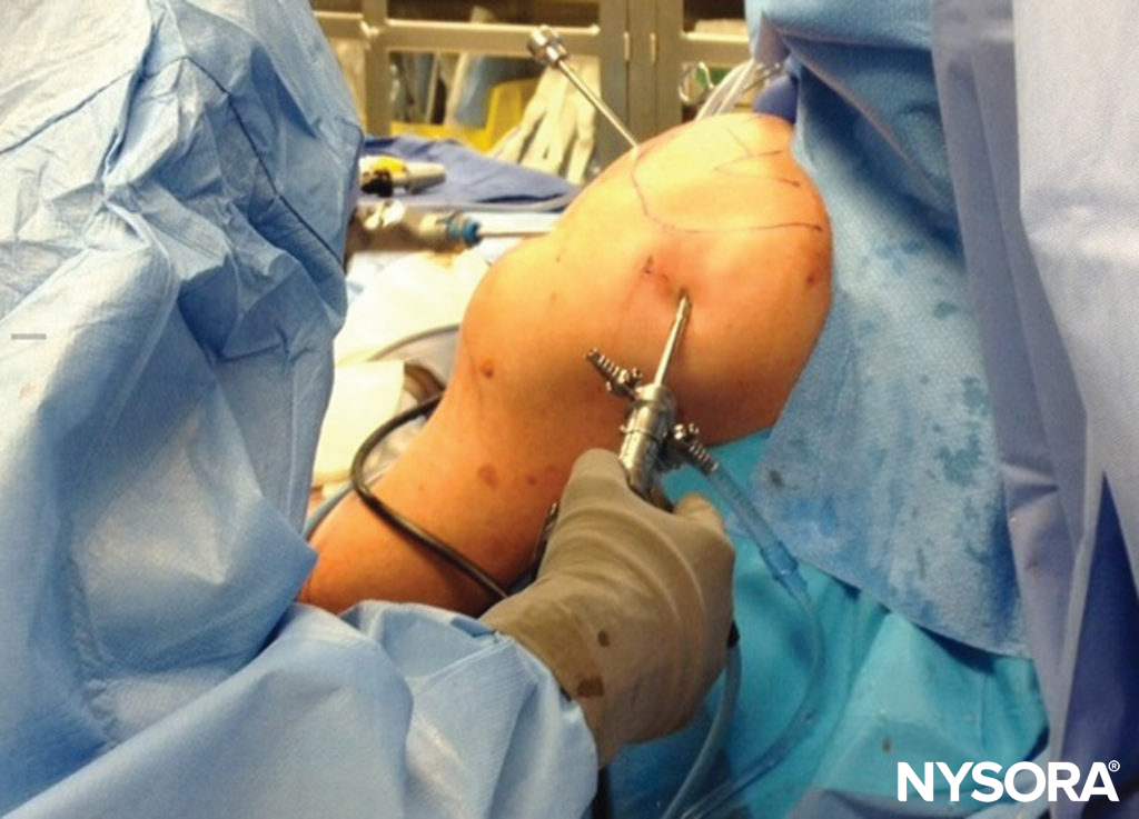 Given the invasive nature of surgical procedures, unintended injuries to anatomic structures are not surprising. Injury to nerves from surgical trauma, whether by sharp dissection or insertion of surgical or fixation devices, is a potential risk of many types of procedures. For instance, in shoulder surgery, injuries may occur to the suprascapular, axillary, musculocutaneous, subscapular, or spinal accessory nerves from either open or arthroscopic procedures. Femoral nerve injuries in the perioperative period are commonly related to ischemia from stretch or retraction occurring during abdominal or pelvic procedures.During hip arthroscopy, sciatic nerve injury may occur and is most closely related to the force of distraction on the operative leg40 (Figure 4). During hamstring tendon harvest for autograft anterior cruciate ligament reconstruction, injury to the infrapatellar or sartorial branch of the saphenous nerve, with consequent sensory deficits, occurs in as many as 74% of patients. Fixation devices, such as K wires, may inadvertently cause trauma to nerves as well. Aberrant anatomy may result in unpredictable positions of nerves, putting them at risk during otherwise-routine procedures.
