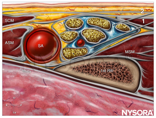 - Goal: Local anesthetic spread around the brachial plexus, posterior and superficial to the subclavian artery
