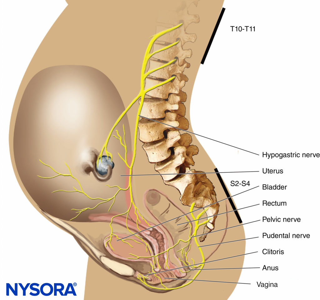 - Analgesia for the second stage of labor and delivery requires the block of the S2–4 segments because of pain due to vaginal distention and perineal pressure.